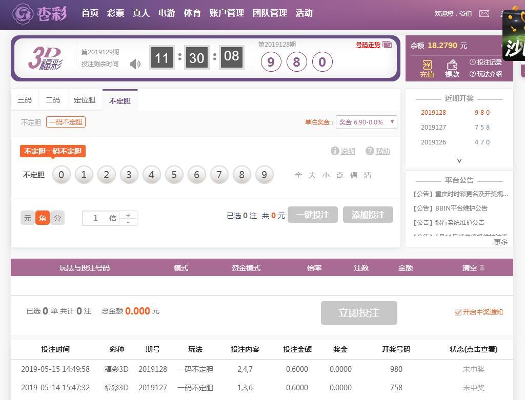 福彩3D连续2天失利。 |