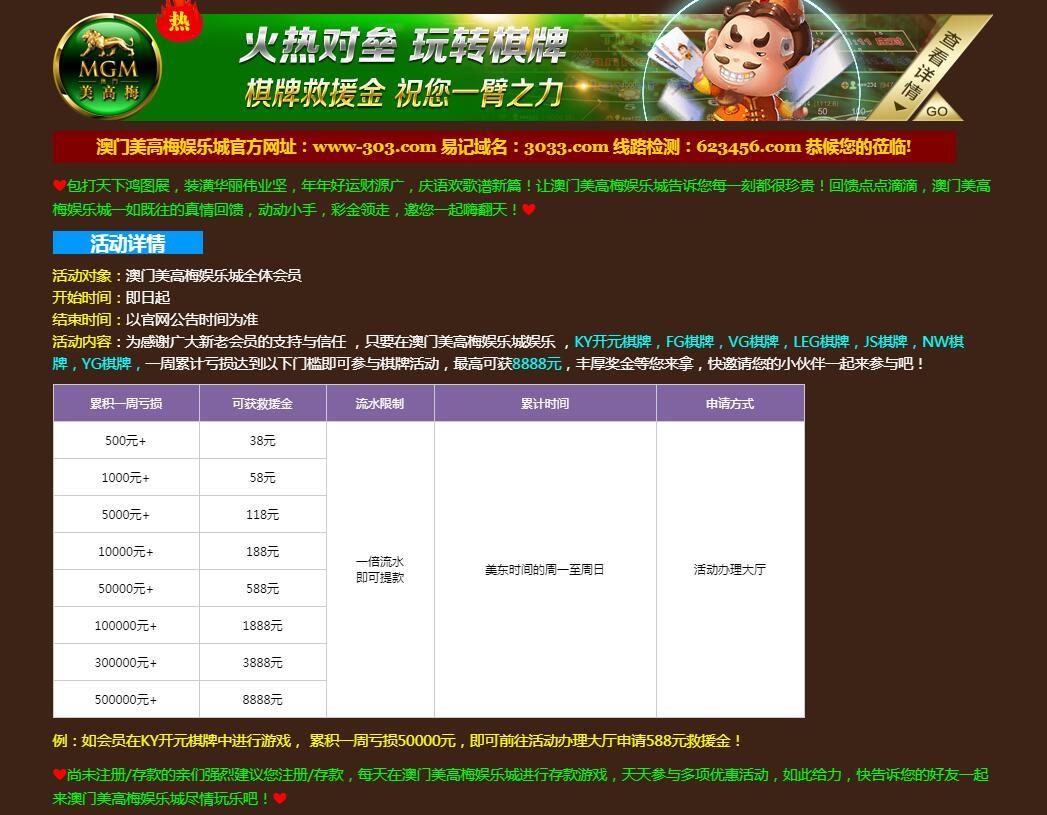 [|热门白菜] 澳门美高梅赌场,火热对垒,玩转棋牌,棋牌救援金,助您一臂之力。 |