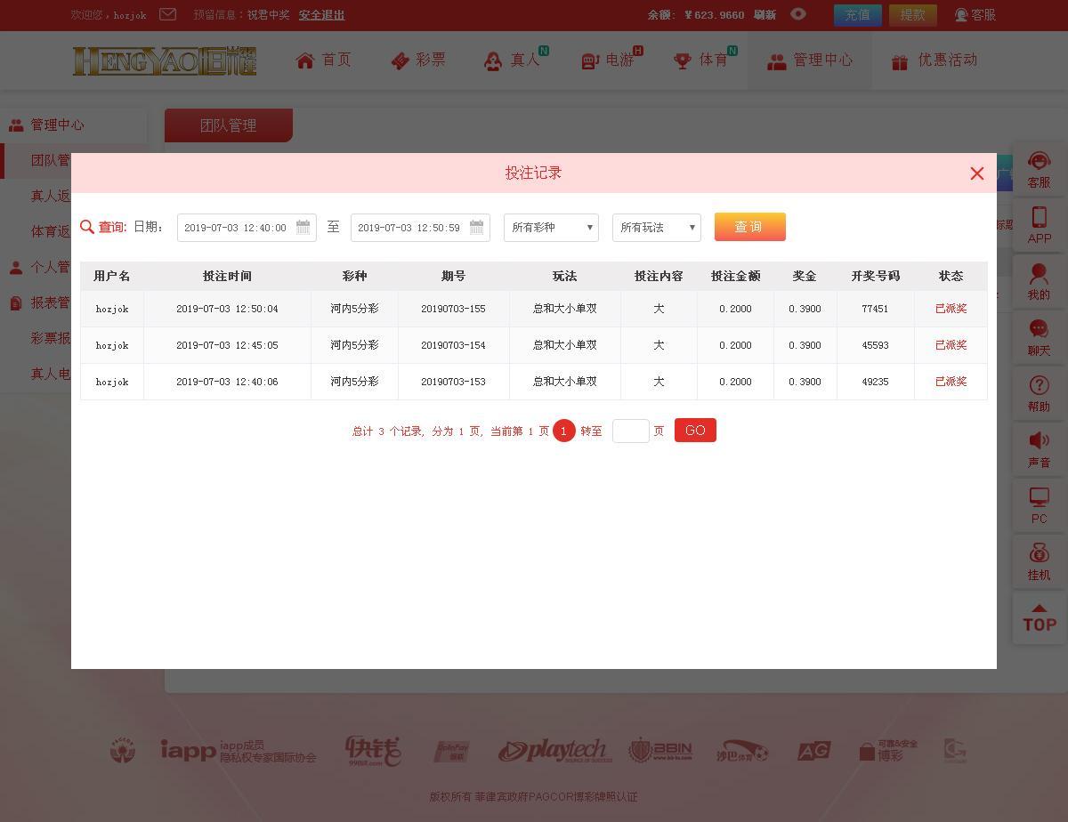 2,在每日中午12:00 活动正式贴中回复,需附带当日12:00至次日11:59内的连续3场投注≥0.2元的恒耀 河内五分彩 大小单双中 总和 大小的下注实战注单截图。